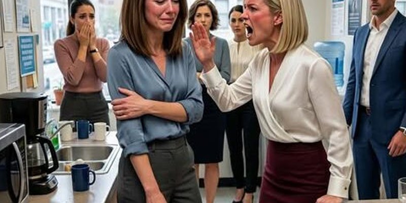 Emily’s head turned with the impact, her cheek burning. Around them, employees froze in shock. Slowly, she faced Vanessa again, a faint red mark rising on her skin, and asked in a voice so calm it unsettled everyone, “Your husband?”
