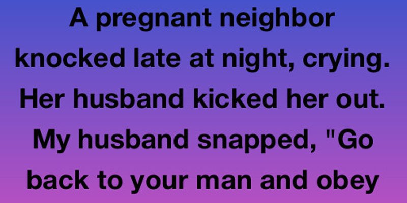 A pregnant neighbor knocked late at night, crying. It was nearly eleven, and the rain was hammering against the windows of our suburban home in Georgia. When I opened the door, there stood Ivy, a sweet girl from three doors down who had moved in just six months ago. She was drenched to the bone, clutching a small canvas bag, her eyes red and swollen from crying. She told me her husband, a man who always seemed a bit too quiet and stern for my liking, had kicked her out after a heated argument about finances.